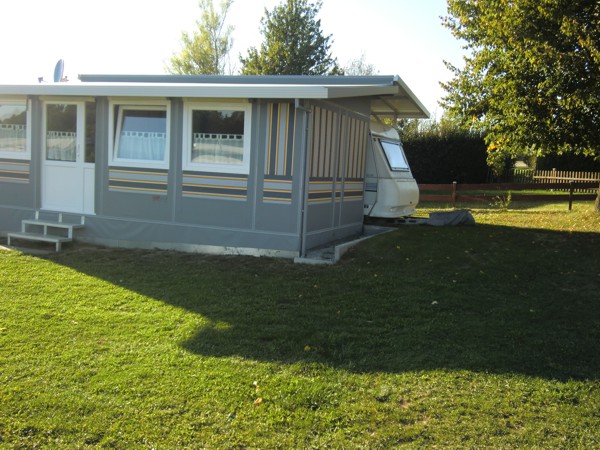 Der Campingplatz "Am Sonnenbach" bietet für alle, die gerne Campingluft schnuppern möchten und noch kein eigenes Freizeitgefährt besitzen, einen komplett ausgestatteten Wohnwagen mit Vorzelt für die ganze Familie (max. 5 Personen) an.